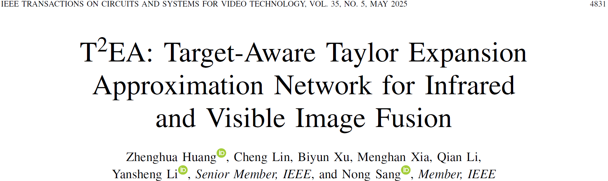 题目:T²EA: Target-Aware Taylor Expansion Approximation Network for Infrared and Visible Image Fusion
