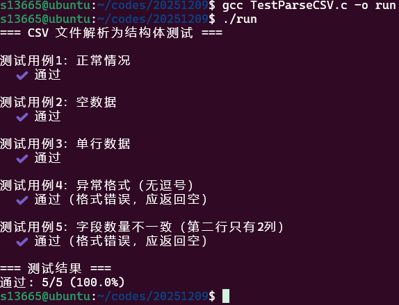 void run_tests(){ printf("=== CSV 文件解析为结构体测试 ===\n"); int pass_count = 0; int total_count = 0;